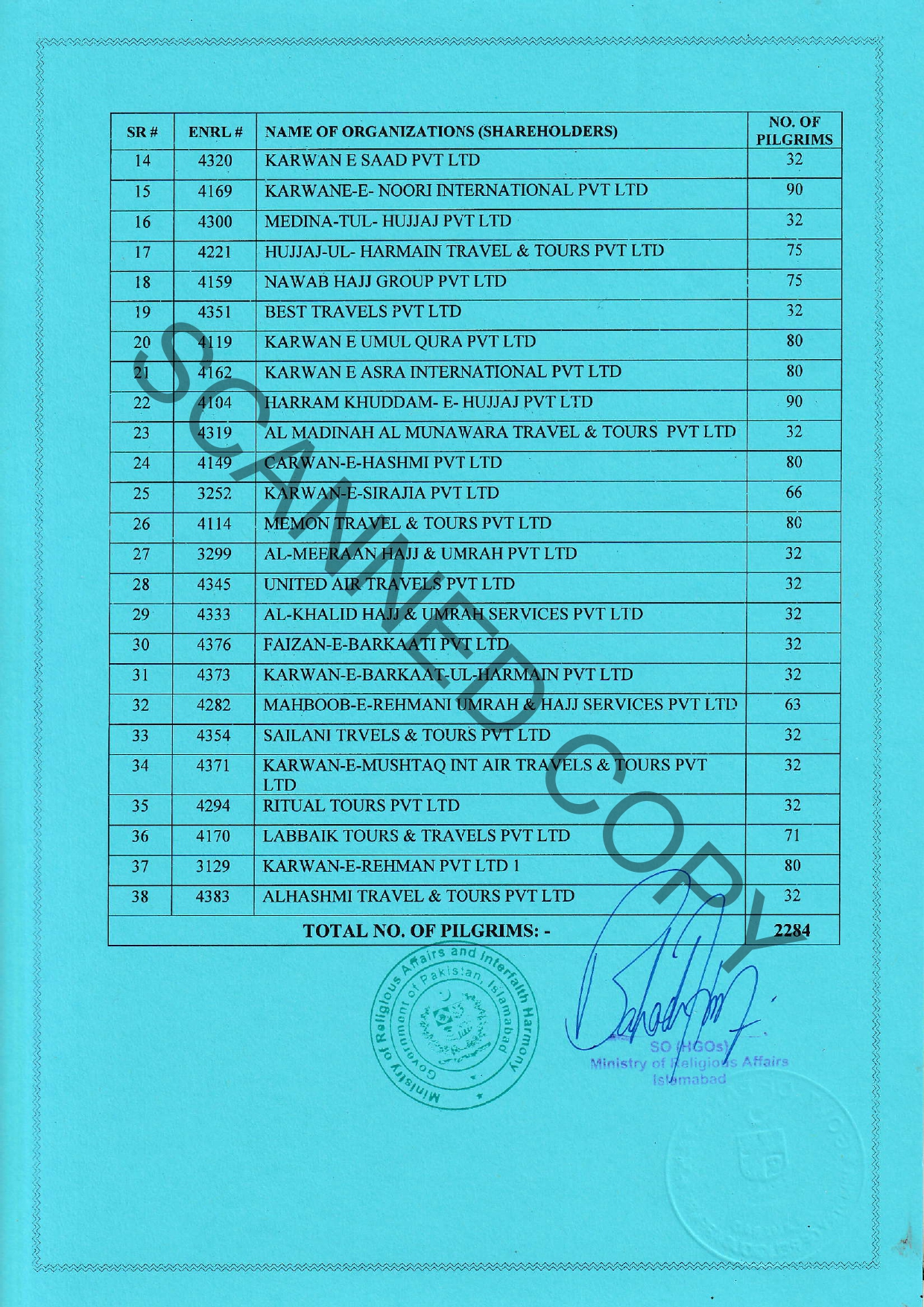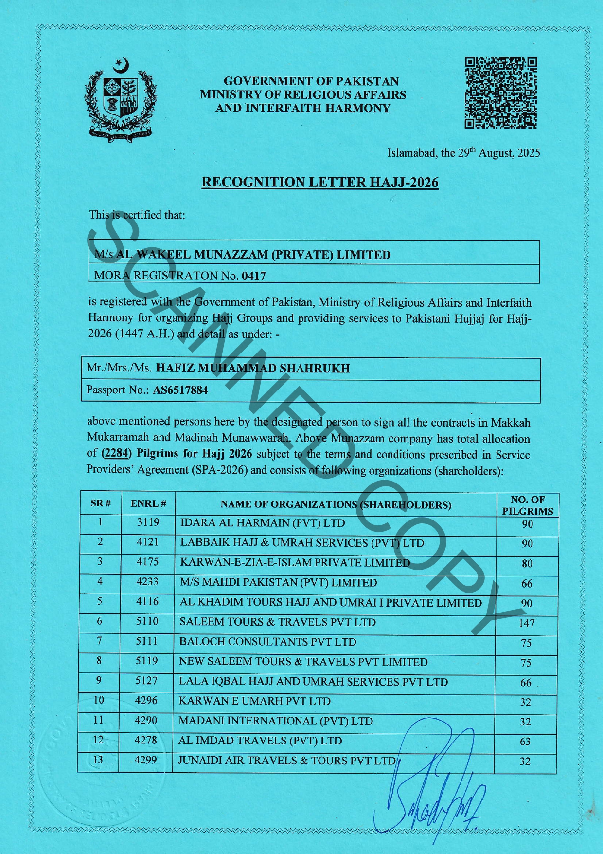 AUTHORIZED FROM MINISTRY OF RELIGIOUS AFFAIRS (R.L LETTER)